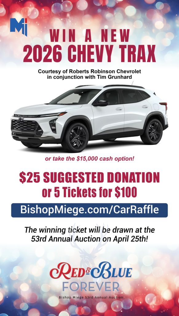 This raffle is part of the Bishop Miege “Red & Blue Forever” Auction, helping support students, programs, and the future of the community. Every ticket purchased makes a difference
