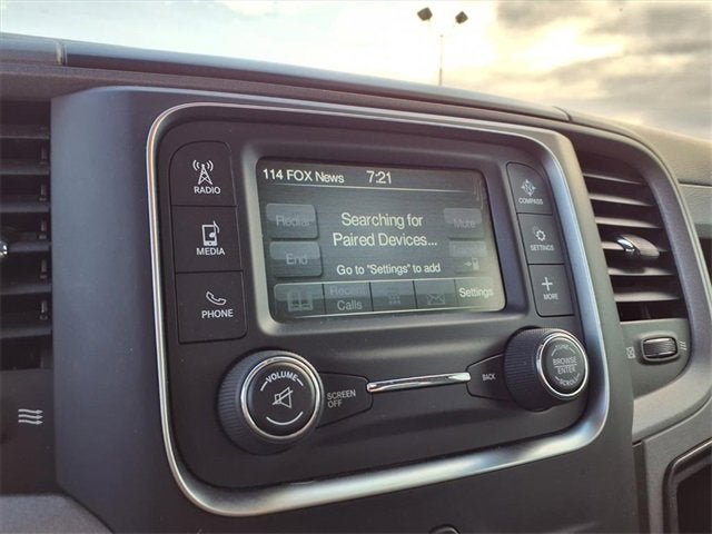 Clean CARFAX. CARFAX One-Owner. **ANDROID AUTO**, **APPLE CARPLAY**, **AUTOMATIC HEADLIGHTS**, **Bluetooth®, HANDS-FREE**, **TOUCH SCREEN CONTROLS**, 1-Year SiriusXM Radio Service, 17 x 7 Steel Wheels, 3.21 Rear Axle Ratio, 4-Wheel Disc Brakes, 40/20/40 Split Bench Seat, 5.0 Touchscreen Display, 6 Speakers, ABS brakes, Active Grille Shutters, Air Conditioning, AM/FM radio, Auto-dimming Rear-View mirror, Body Color Upper Fascia, Brake assist, Bright Front Bumper, Bright Grille, Bright Rear Bumper, Carpet Floor Covering, Center Hub, Charge Only Remote USB Port, Cloth 40/20/40 Bench Seat, Delay-off headlights, Driver door bin, Dual front impact airbags, Dual front side impact airbags, Electronic Shift, Electronic Stability Control, For More Info, Call 800-643-2112, Front anti-roll bar, Front Armrest w/3 Cupholders, Front Center Armrest, Front Floor Mats, Front Fog Lamps, Front wheel independent suspension, Fully automatic headlights, GPS Antenna Input, Heavy Duty Vinyl 40/20/40 Split Bench Seat, Integrated Voice Command w/Bluetooth®, Low tire pressure warning, Manual Adjust Seats, Media Hub (USB, AUX), No Satellite Coverage HI/AK/PR/VI, Occupant sensing airbag, Overhead airbag, Overhead Console, ParkView Rear Back-Up Camera, Passenger door bin, Power steering, Quick Order Package 22B Tradesman, Radio data system, Radio: 3.0, Radio: Uconnect 3 w/5 Display, Rear anti-roll bar, Rear step bumper, Rear View Day/Night Mirror, SiriusXM Satellite Radio, Speed control, Tachometer, Temperature & Compass Gauge, Tilt steering wheel, Tip Start, Traction control, Tradesman Package, Tradesman SXT Package, Variably intermittent wipers, Vendor Painted Cargo Box Tracking, Voltmeter, Wheels: 20 x 8 Aluminum Chrome Clad.
